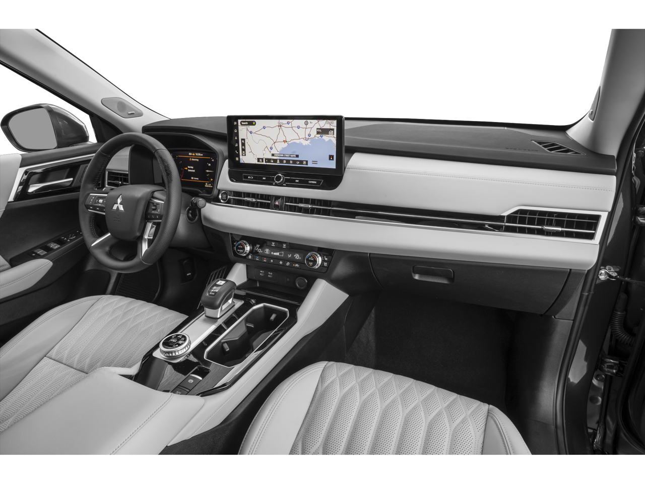 - Radio: AM/FM 12.3" Navigation w/Smartphone-Link -inc: wireless Apple CarPlay and Google Android Auto, Mitsubishi Connect w/5-year safeguard trial and 1-year remote services trial (mobile app enrollment required), Bluetooth® wireless technology, steering wheel controls for phone, audio and voice recognition, 2 USB-C ports, SXM 360L audio w/90-day SXM all access subscription and SXM traffic & travel link w/90-day subscription and dynamic sound Yamaha premium system w/8 speakers
