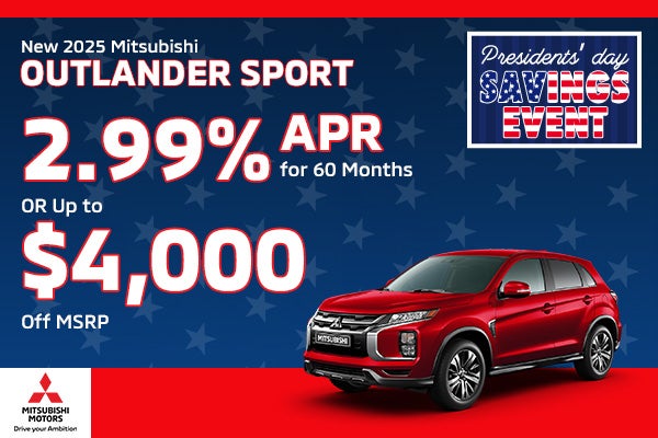 New '25 Mitsubishi Outlander Sport 2.99% APR for 60 Mos Or Up to $4,000 Off