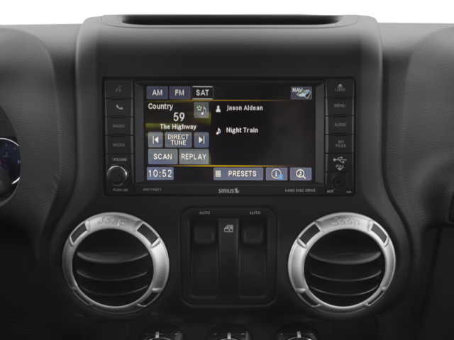 Connectivity Group (Leather Wrapped Steering Wheel, Remote USB Port, Tire Pressure Monitoring Display, Uconnect Voice Command w/Bluetooth®, and Vehicle Information Center), Quick Order Package 24G (Body Color Appliques Front Bumper, Body Color Appliques Rear Bumper, and Body Color/Accent Color Grille), Trailer Tow Group (Class II Receiver Hitch and Trailer Tow w/4-Pin Connector Wiring), 18 x 7.5 Polished Satin Carbon Wheels, 4-Wheel Disc Brakes, 40GB Hard Drive w/28GB Available, 5-Year SiriusXM Travel Link Service, 6.5 Touchscreen Display, 8 Speakers, ABS brakes, Air Conditioning, Air Conditioning w/Auto Temperature Control, Air Filtering, Alloy wheels, Alpine 9-Speaker w/All Weather Subwoofer, AM/FM radio: SiriusXM, Anti-Spin Differential Rear Axle, Audio Jack Input for Mobile Devices, Auto-dimming Rear-View mirror, Brake assist, CD player, Cloth Seats w/Adjustable Head Restraints, Compass, Driver door bin, Driver vanity mirror, Dual front impact airbags, Electronic Stability Control, Engine Block Heater, Freedom Panel Storage Bag, Front anti-roll bar, Front Bucket Seats, Front Center Armrest w/Storage, Front fog lights, Front reading lights, Fully automatic headlights, GPS Navigation, Heated door mirrors, Heated Front Seats, Heavy Duty Suspension w/Gas Shocks, Humidity Sensor, Illuminated entry, Integrated roll-over protection, Jeep Trail Rated Kit, Leather steering wheel, Low tire pressure warning, MOPAR Slush Mats, Occupant sensing airbag, Outside temperature display, Panic alarm, Passenger door bin, Passenger vanity mirror, Power door mirrors, Power steering, Power windows, Radio data system, Radio: 130, Radio: 430N, Rear anti-roll bar, Rear Window Defroster, Rear Window Wiper/Washer, Remote keyless entry, Remote Start System, Security system, SiriusXM Travel Link, Speed control, Steering wheel mounted audio controls, Supplemental Front Seat Side Airbags, Tachometer, Tilt steering wheel, Traction control, Trip computer, and Variably intermittent wipers.