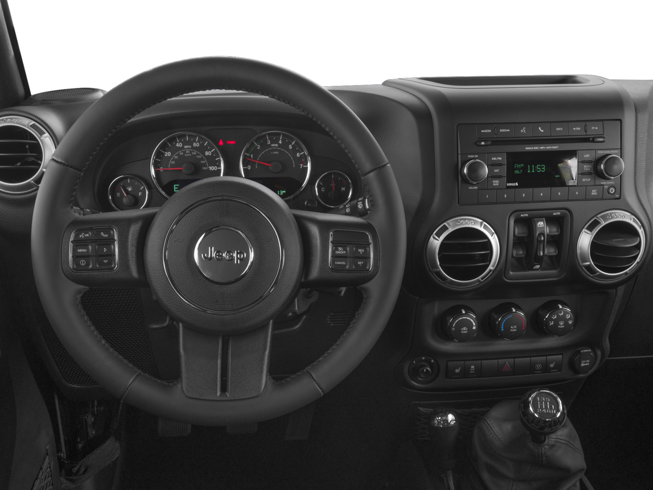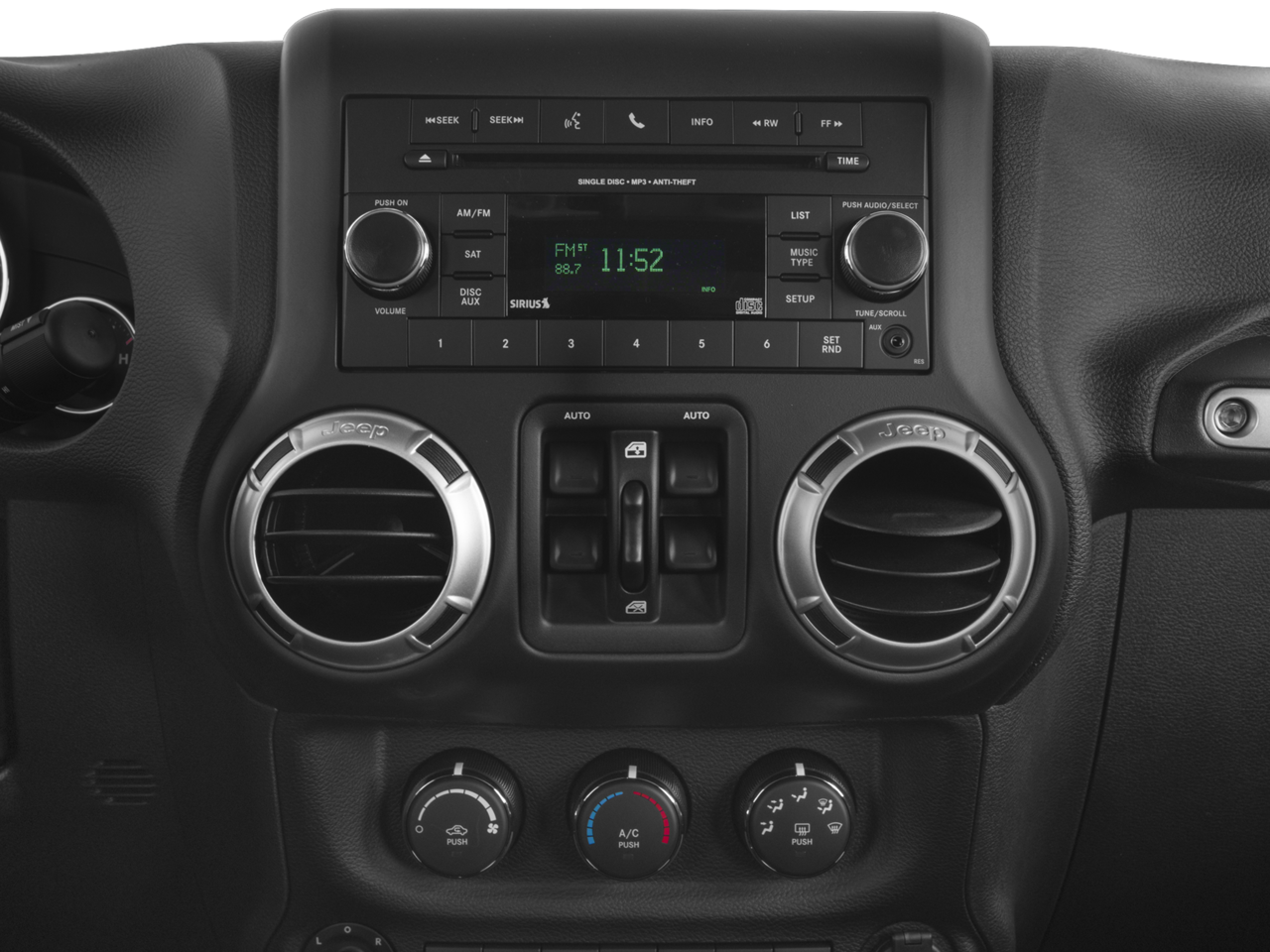 Connectivity Group (Remote USB Port, Tire Pressure Monitoring Display, Uconnect Voice Command w/Bluetooth®, and Vehicle Information Center), Quick Order Package 24G (Body Color Appliques Front Bumper, Body Color Appliques Rear Bumper, and Body Color/Accent Color Grille), 18 x 7.5 Polished Satin Carbon Wheels, 3.21 Rear Axle Ratio, 4-Wheel Disc Brakes, 8 Speakers, ABS brakes, Air Conditioning, Alloy wheels, AM/FM radio: SiriusXM, Audio Jack Input for Mobile Devices, Auto-dimming Rear-View mirror, Black 3-Piece Hard Top, Brake assist, CD player, Cloth Seats w/Adjustable Head Restraints, Compass, Delete Sunrider Soft Top, Driver door bin, Driver vanity mirror, Dual front impact airbags, Electronic Stability Control, Freedom Panel Storage Bag, Front anti-roll bar, Front Bucket Seats, Front Center Armrest w/Storage, Front fog lights, Front reading lights, Fully automatic headlights, Heated door mirrors, Heavy Duty Suspension w/Gas Shocks (DISC), Illuminated entry, Integrated roll-over protection, Leather steering wheel, Low tire pressure warning, Occupant sensing airbag, Outside temperature display, Panic alarm, Passenger door bin, Passenger vanity mirror, Power door mirrors, Power steering, Power windows, Radio data system, Radio: 130, Rear anti-roll bar, Rear Window Defroster, Rear Window Wiper/Washer, Remote keyless entry, Remote Start System, Security system, Speed control, Split folding rear seat, Steering wheel mounted audio controls, Tachometer, Tilt steering wheel, Traction control, Trip computer, and Variably intermittent wipers.