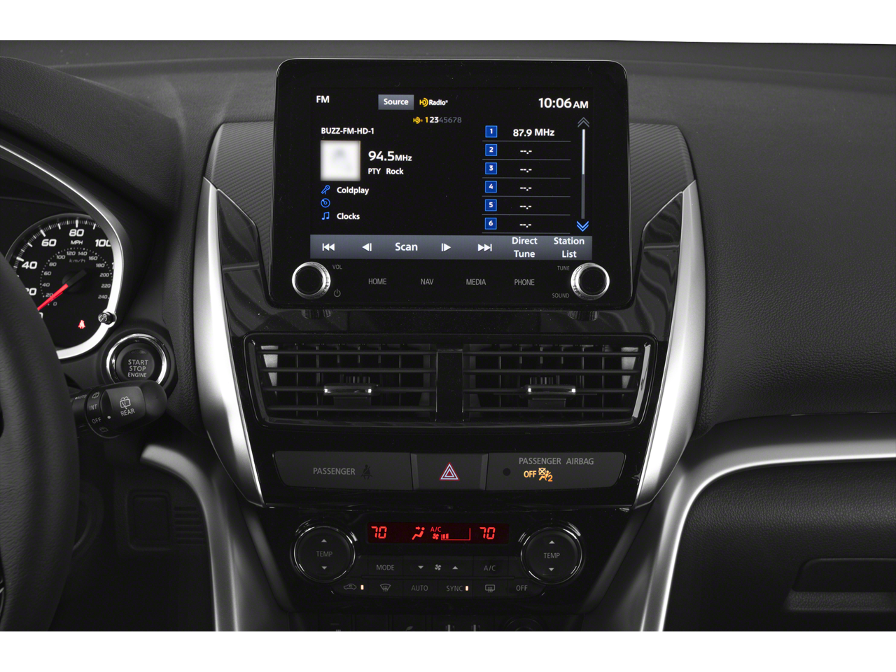 - Radio: AM/FM 8.0" Nav System w/Smartphone-Link -inc: 6 speakers, HD Radio, Bluetooth® wireless technology, front USB ports, Apple CarPlay, Android Auto, steering wheel audio, phone and voice recognition controls, SiriusXM w/3-month All Access trial and Mitsubishi Connect w/Safeguard and remote services and 24-month trial (mobile app enrollment required)