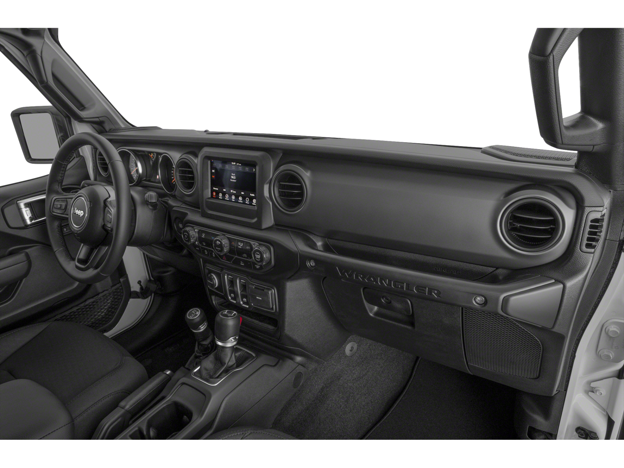 Convenience Group (Universal Garage Door Opener), Quick Order Package 25S Sport S (Automatic Headlamps, Deep Tint Sunscreen Windows, Front 1-Touch Down Power Windows, Power Heated Mirrors, Premium Wrapped Steering Wheel, Remote Keyless Entry, Security Alarm, Speed Sensitive Power Locks, Sport S, Sun Visors w/Illuminated Vanity Mirrors, and Wheels: 17 x 7.5 Tech Silver Aluminum), Technology Group (2-Door Passive Entry, Front Door Locks, Air Conditioning w/Auto Temperature Control, Air Filtering, Cluster 7.0 TFT Color Display, and SiriusXM Satellite Radio), 3.45 Overall Top Gear Ratio, 4-Wheel Disc Brakes, 8 Speakers, ABS brakes, AM/FM radio, Apple CarPlay, Apple CarPlay/Android Auto, Auxiliary Battery, Black 3-Piece Hard Top, Brake assist, Cloth Low-Back Bucket Seats, Compass, Delay-off headlights, Driver door bin, Driver vanity mirror, Dual front impact airbags, Dual front side impact airbags, Electronic Stability Control, Emergency communication system: SiriusXM Guardian, Engine Oil Cooler, Freedom Panel Storage Bag, Front anti-roll bar, Front Bucket Seats, Front Center Armrest w/Storage, Front fog lights, Front reading lights, Google Android Auto, GPS Antenna Input, Integrated Center Stack Radio, Integrated roll-over protection, Integrated Voice Command w/Bluetooth®, Low tire pressure warning, Mopar Black Tubular Side Steps, MOPAR Grab Handle Kit, MOPAR Grab Handles, No Soft Top, Non-Locking Fuel Cap w/o Discriminator, Normal Duty Suspension, Occupant sensing airbag, Outside temperature display, ParkView Rear Back-Up Camera, Passenger door bin, Passenger vanity mirror, Power steering, Radio data system, Radio: Uconnect 4 w/7 Display, Rear anti-roll bar, Rear reading lights, Rear Window Defroster, Rear Window Wiper/Washer, Speed control, Start-Stop Dual Battery System, Steering wheel mounted audio controls, Tachometer, Telescoping steering wheel, Tilt steering wheel, Traction control, Trip computer, USB Host Flip, Variably intermittent wipers, and Wheels: 17 x 7.5 Black Steel Styled.