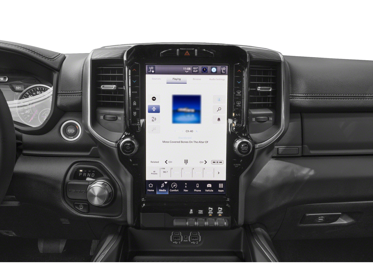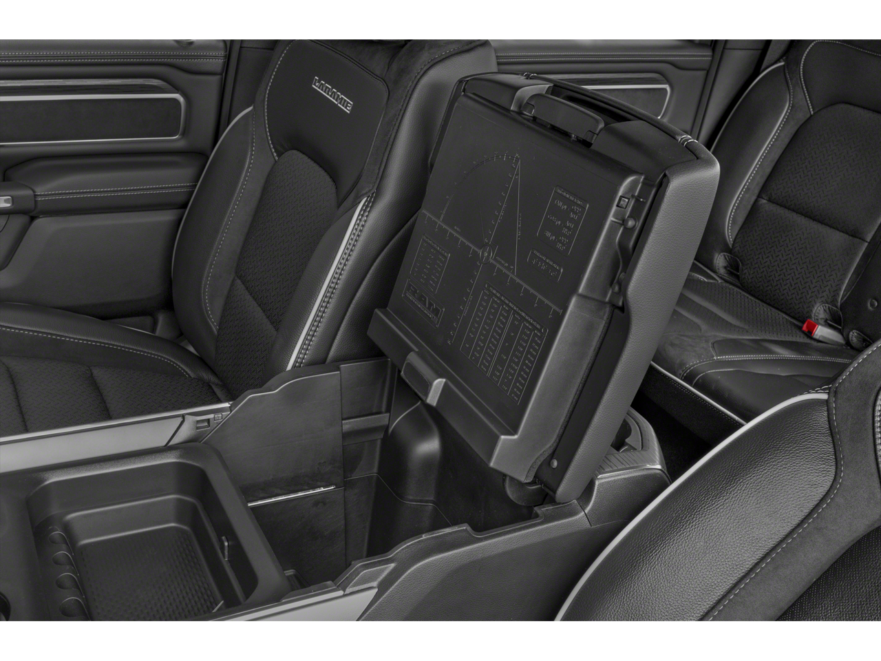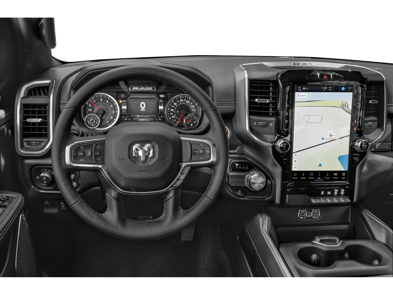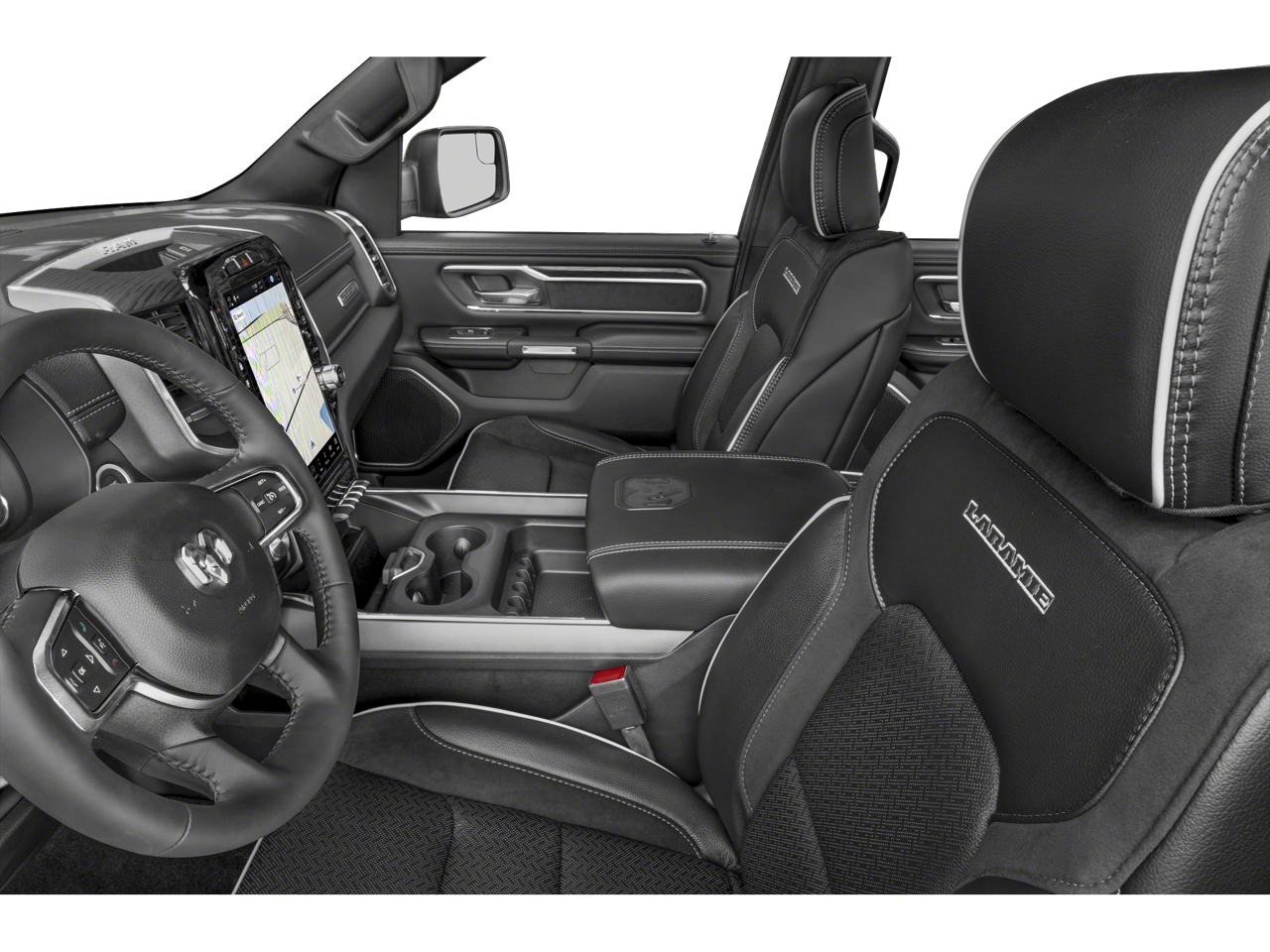 Laramie Level 1 Equipment Group (12 Touchscreen Display, 2nd Row In Floor Storage Bins, 4G LTE Wi-Fi Hot Spot, Apple CarPlay, Auto High Beam Headlamp Control, Blind Spot & Cross Path Detection, Connected Travel & Traffic Services, Connectivity - US/Canada, Disassociated Touchscreen Display, Electric Shift-On-Demand Transfer Case, Foam Bottle Insert (Door Trim Panel), For Details, Visit DriveUconnect.com, For More Info, Call 800-643-2112, Front Door Accent Lighting, Front LED Fog Lamps, Global Telematics Box Module (TBM), Google Android Auto, GPS Antenna Input, GPS Navigation, HD Radio, Integrated Center Stack Radio, Integrated Voice Command w/Bluetooth®, LED Reflector Headlamps, Radio: Uconnect 5 Nav w/12.0 Display, Rain Sensitive Windshield Wipers, Rear Door Accent Lighting, Rear Power Sliding Window, Rear Window Defroster, Remote Tailgate Release, SiriusXM Radio Service, SiriusXM w/360L, and USB Host Flip), Quick Order Package 27H Laramie, Sport Appearance Package (Black Interior Accents, Body Color Exterior Mirrors, Body Color Front Bumper, Body Color Premium Power Mirrors, Body Color Rear Bumper w/Step Pads, Grille Surround 3 Body Color Tex 2 Black, RAM Grille Badge - Chrome, Sport Decal, Sport Performance Hood, and Wheels: 20 x 9 Premium Painted w/Inserts), #1 Seat Foam Cushion, 10 Speakers, 3 Rear Seat Head Restraints, 3.21 Rear Axle Ratio, 33 Gallon Fuel Tank, 4 Way Front Headrests, 4-Wheel Disc Brakes, 48V Belt Starter Generator, ABS brakes, Adjustable pedals, Air Conditioning, Alloy wheels, AM/FM radio: SiriusXM with 360L, Apple CarPlay/Android Auto, Audio memory, Auto-dimming door mirrors, Auto-Dimming Exterior Driver Mirror, Auto-dimming Rear-View mirror, Automatic temperature control, Brake assist, Bumpers: chrome, Chrome Exterior Mirrors, Compass, Convex Wide-Angle Exterior Mirror Insert, Delay-off headlights, Driver door bin, Driver Seat Memory, Driver vanity mirror, Dual front impact airbags, Dual front side impact airbags, Electronic Stability Control, Exterior Mirrors Courtesy Lamps, Exterior Mirrors w/Heating Element, Exterior Mirrors w/Memory, Exterior Mirrors w/Supplemental Signals, Front anti-roll bar, Front Center Armrest w/Storage, Front dual zone A/C, Front fog lights, Front License Plate Bracket, Front reading lights, Front Seat Back Map Pockets, Front wheel independent suspension, Fully automatic headlights, Garage door transmitter, Heated door mirrors, Heated Front Seats, Heated front seats, Heated Steering Wheel, Heated steering wheel, Illuminated entry, Leather steering wheel, Leather Trim 40/20/40 Bench Seat, Low tire pressure warning, Memory seat, MOPAR Front & Rear Rubber Floor Mats, Navigation System, Occupant sensing airbag, Outside temperature display, Overhead airbag, Overhead console, Panic alarm, ParkSense Front/Rear Park Assist w/Stop (DISC), ParkView Rear Back-Up Camera, Passenger door bin, Passenger vanity mirror, Pedal memory, Power 2-Way Driver Lumbar Adjust, Power 2-Way Passenger Lumbar Adjust, Power 8-Way Driver & Passenger Seats, Power door mirrors, Power driver seat, Power passenger seat, Power steering, Power windows, Power-Folding Mirrors, Radio data system, Radio: Uconnect 5 Nav w/8.4 Display, Rear 60/40 Folding Seat, Rear anti-roll bar, Rear seat center armrest, Rear step bumper, Remote keyless entry, Security system, Speed control, Split folding rear seat, Steering wheel mounted audio controls, Tachometer, Telescoping steering wheel, Tilt steering wheel, Traction control, Trip computer, Turn signal indicator mirrors, Variably intermittent wipers, Ventilated Front Seats, Ventilated front seats, Voltmeter, Wheels: 18 x 8 Aluminum Base Painted, and Wheels: 20 x 9 Premium Paint/PolisheD.